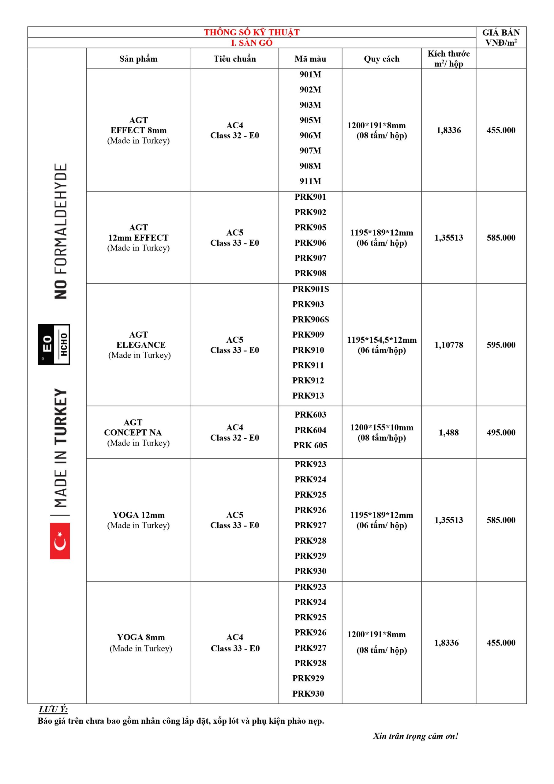 Chúng tôi xin trân trọng gửi tới Qúy Khách hàng bảng báo giá các dòng sàn gỗ AGT cao cấp số 1 Châu Âu: